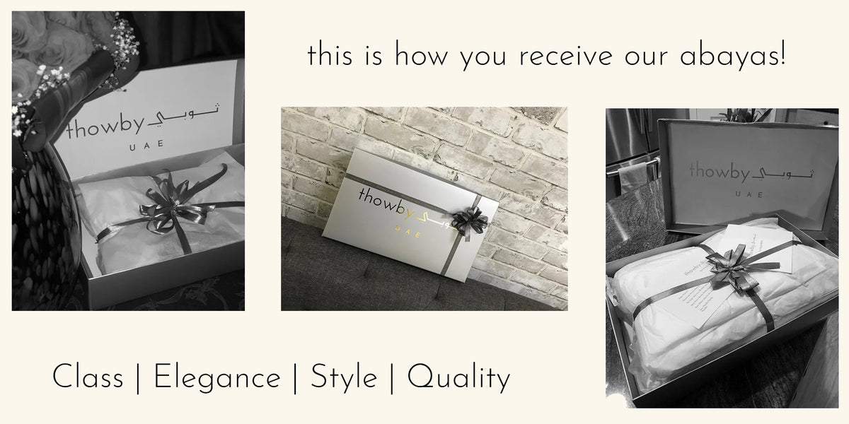 This is how you receive your abayas. thowby produces every single abaya with utmost love and care. from order till delivery your abaya is our first and only priority!