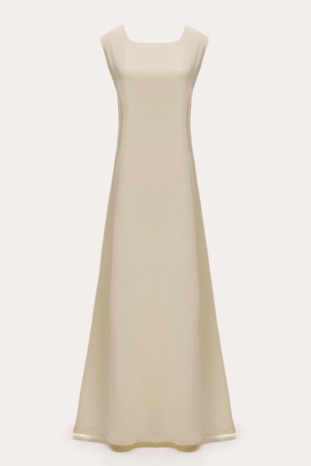 Al Emarat, A Sleeveless off-white under-abaya dress is the essential foundation piece crafted from luxurious, premium Crushed Crepe fabric. This versatile dress is designed to be worn beneath your abayas, providing an opaque and beautifully smooth layer that ensures your outer garment drapes flawlessly. The Crushed Crepe offers supreme comfort and a delicate texture that resists creasing. Its practical sleeveless design prevents bulkiness, making it ideal for layering. The off-white color seamlessly complements virtually any abaya, enhancing your silhouette and adding a touch of sophistication and elegance. Perfect for casual or formal gatherings, the Al Emarat dress is an investment in style. To maintain the quality, gentle wash is recommended. Elevate your comfort with this piece that combines simplicity and timeless charm.