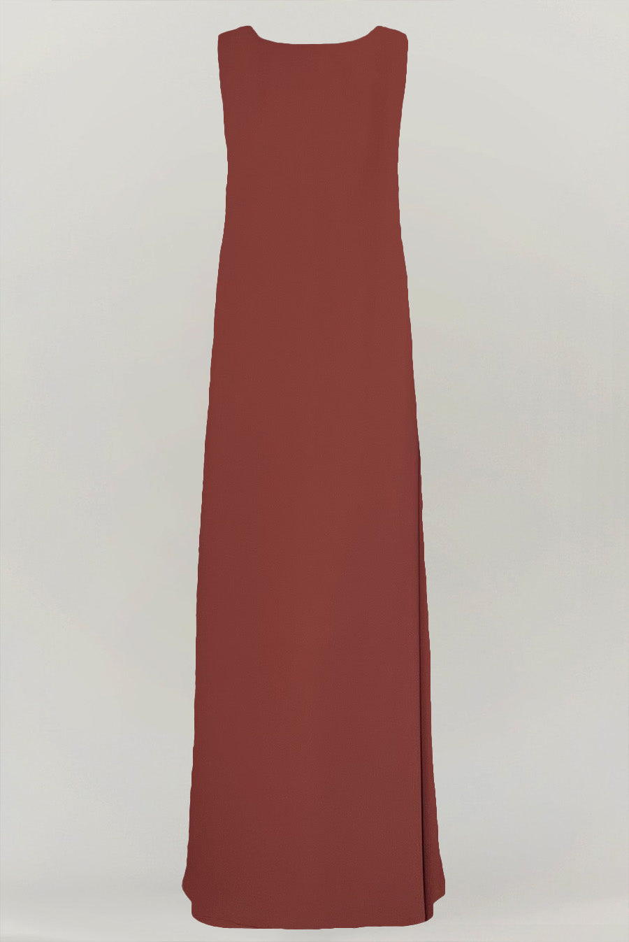 Thelal, A Modest Rust Brown under Abaya dress is the essential foundation piece, meticulously crafted from luxurious, premium Crepe fabric for exceptional comfort and a refined fit. This versatile sleeveless garment is designed to be worn discreetly beneath your abayas, providing a smooth, opaque layer that ensures your outer garment drapes flawlessly. The rich, Modest Rust Brown hue offers a warm, sophisticated color that pairs beautifully with black, gold, or earthy-toned abayas. Perfect for both casual and formal pairings, the Thelal dress enhances your silhouette, adding a touch of elegance and timeless charm. To maintain the delicate quality, gentle wash is recommended. Elevate your everyday comfort with this dress that flawlessly combines simplicity and enduring allure.